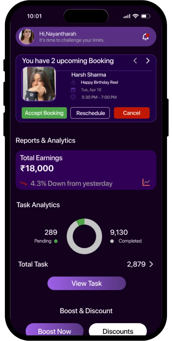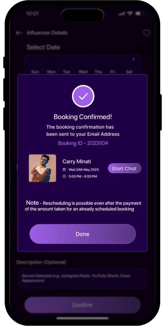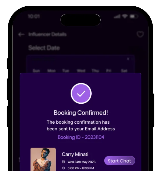 Chat with influencers once you've locked it in—because we're not about that "Situationship" energy. Payment done? Now we are gonna talk, tell me what's up? Get instant replies, iron out every detail, and keep it all in one thread instead of screenshots scattered across your camera roll like evidence. One booking, one chat, zero confusion. Simple as that.
